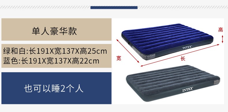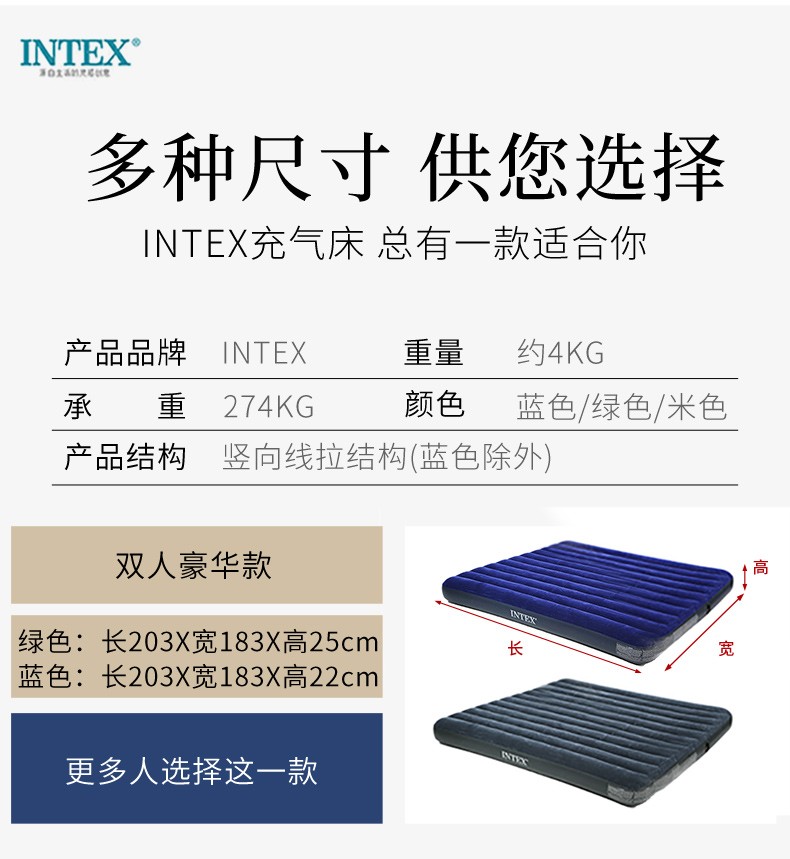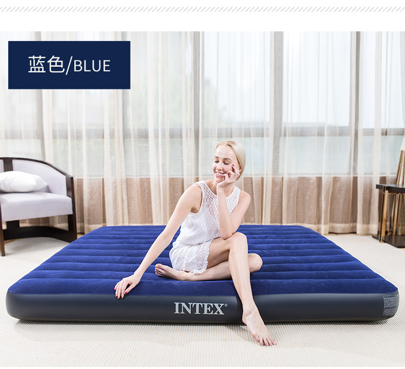 INTEX単ダブルエ入れ床ダンベル増大エアベド折り畳畳床キャンプマット厚めアウド湿式防止パッドアップグレードラインブルーベッド+フットポンプ183 CM*22 CM
